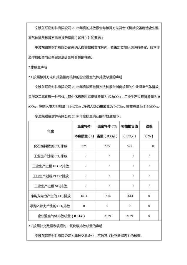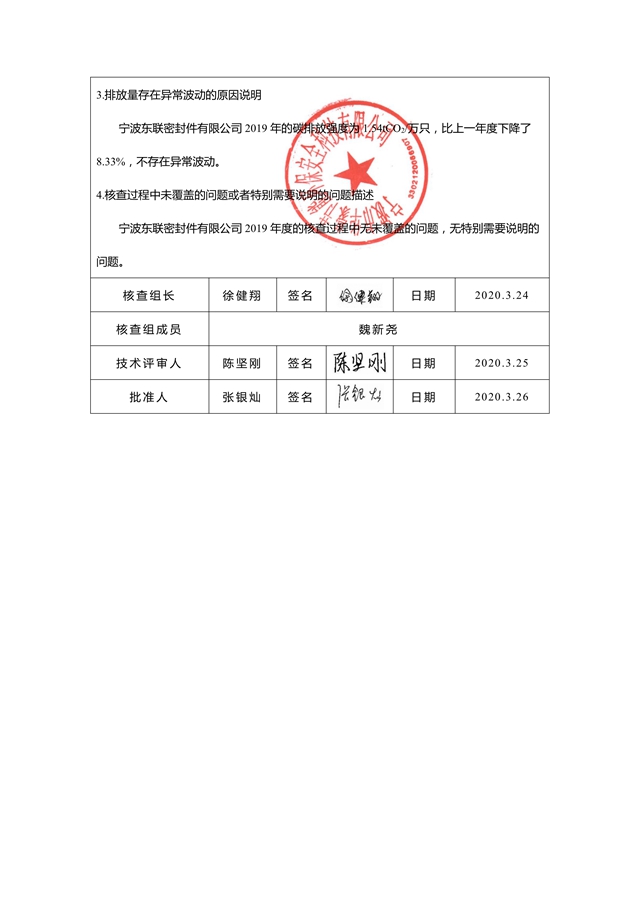2019年度寧波東聯碳核查報告